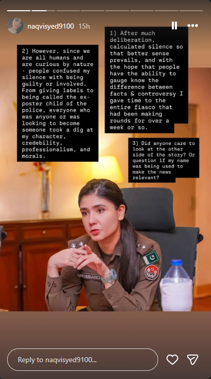 ایس پی شہر بانو نے اپنے خلاف زیر گردش خبروں کے حوالے سے وضاحتی بیان جاری کرتے ہوئے کہا ہے کہ ان کی خاموشی کو بعض افراد نے غلط فہمی کے تحت مجرمانہ یا ملوث ہونے کے مترادف سمجھا حالانکہ حقیقت بالکل مختلف ہے۔